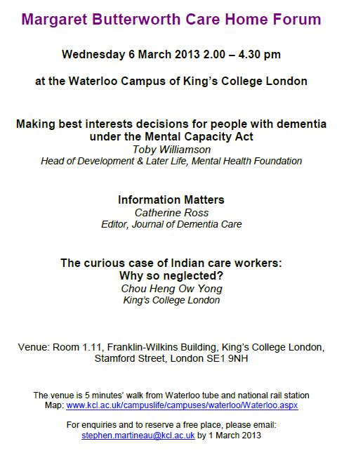 In addition to undertaking the study in 2013, we will be involved in a series of events throughout the year to introduce the Connecting People Intervention to a wider constituency of practitioners, managers, commissioners and users of health and social care services. Although we don’t yet have data on its effectiveness, we would like to engage potential stakeholders in discussions about its implementation to help refine the intervention and broaden its impact. These will include workshops, seminars and conference papers. The first three have already been scheduled.